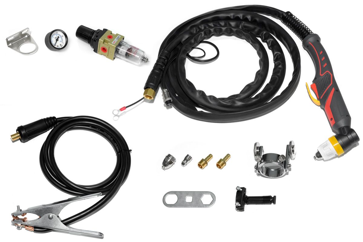 Режим Plasma CUT - В основе технологии плазменной резки лежит создание сжатой электрической дуги, которая формируется между электродом плазматрона и заготовкой. Для создания плазменной струи для резки, в электрическую дугу подается сжатый воздух (возможны и другие газы), который ионизируется и превращается в плазму с температурой порядка 25000 С0. Кроме того, выходящая из сопла плазматрона струя плазмы имеет сверхзвуковую скорость, поэтому при выполнении работы на оборудовании плазменной резки обязательно требуются средства защиты органов слуха (наушники или беруши).