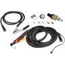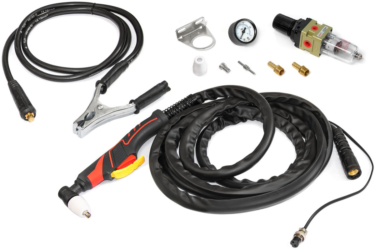 Режим Plasma CUT - В основе технологии плазменной резки лежит создание сжатой электрической дуги, которая формируется между электродом плазматрона и заготовкой. Для создания плазменной струи для резки, в электрическую дугу подается сжатый воздух (возможны и другие газы), который ионизируется и превращается в плазму с температурой порядка 25000 С0. Кроме того, выходящая из сопла плазматрона струя плазмы имеет сверхзвуковую скорость, поэтому при выполнении работы на оборудовании плазменной резки обязательно требуются средства защиты органов слуха (наушники или беруши).
