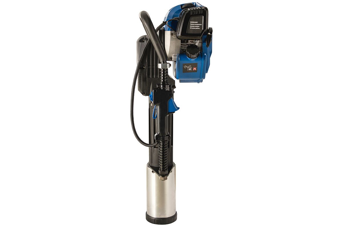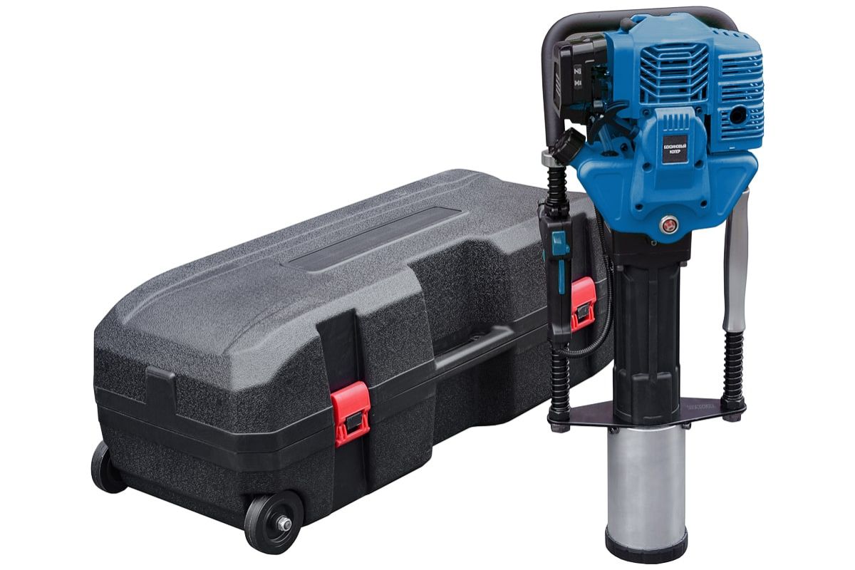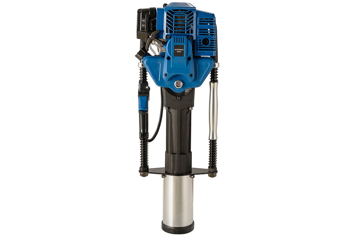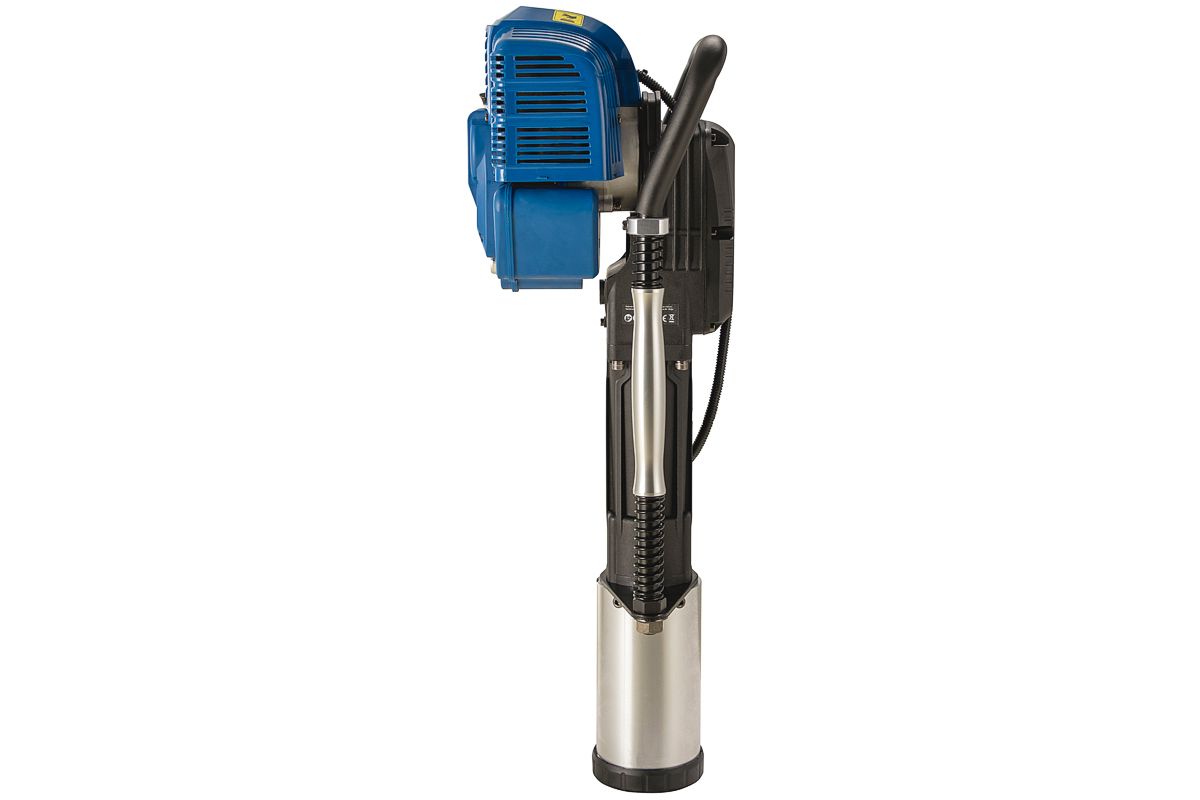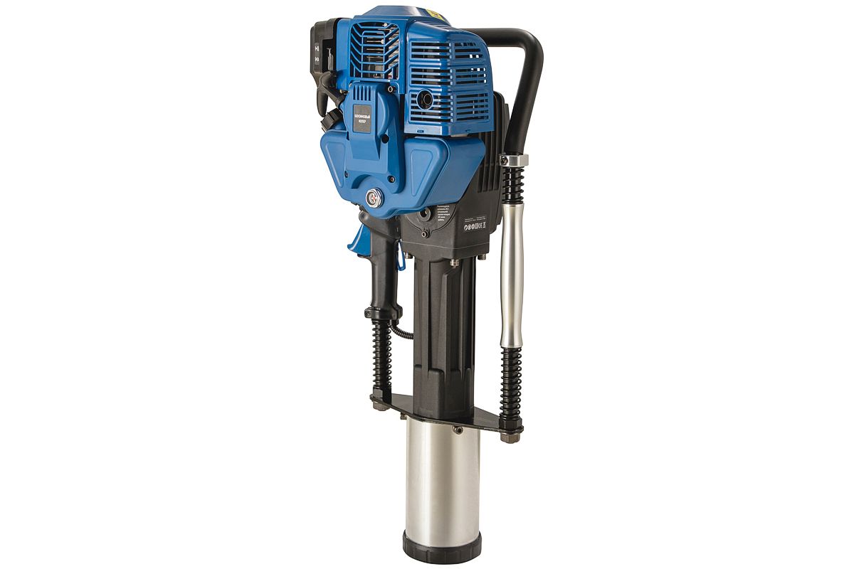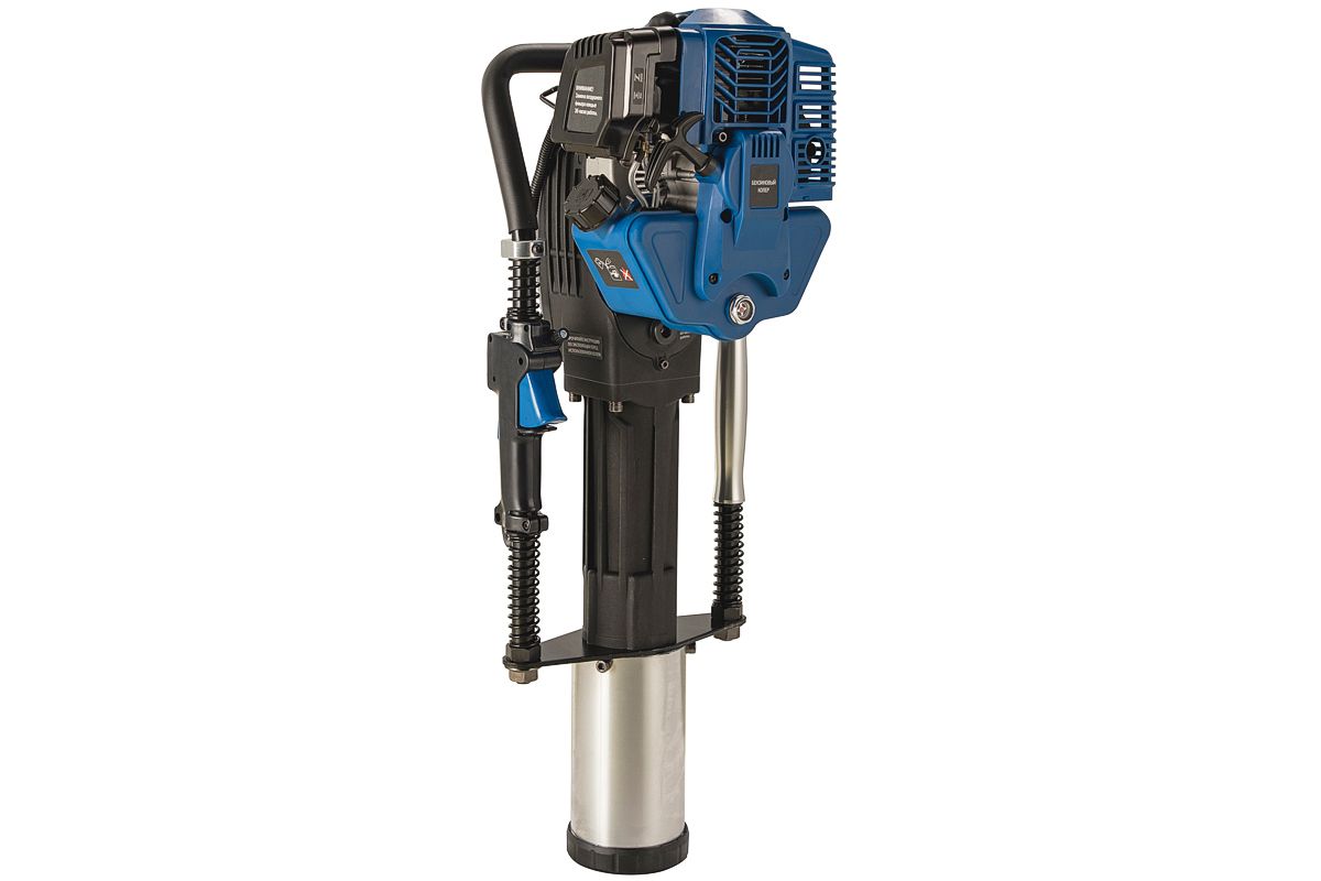 Копер с бензиновым двигателем для забивки столбов диаметром до 100 мм. Мощность двигателя инструмента — 1,7 кВт. Главным образом этот инструмент используется при строительстве ограждений. В отличии от электрического, он более мощный и не требует источника электропитания. По сравнению с пневматическими или гидравлическими, использование бензинового копера не требует дополнительной спецтехники, Значительно ниже по стоимости.