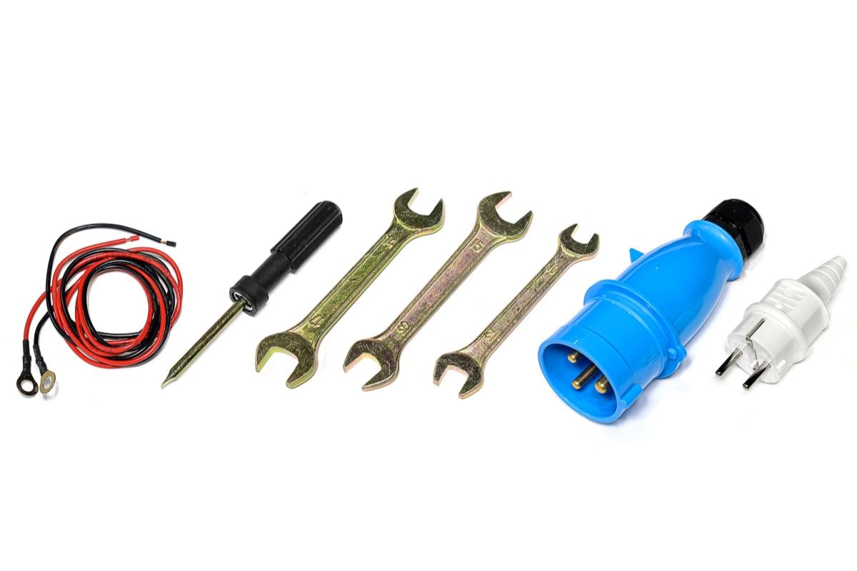 Электрическая вилка, разъем для АВР, комплект проводов, колёса
