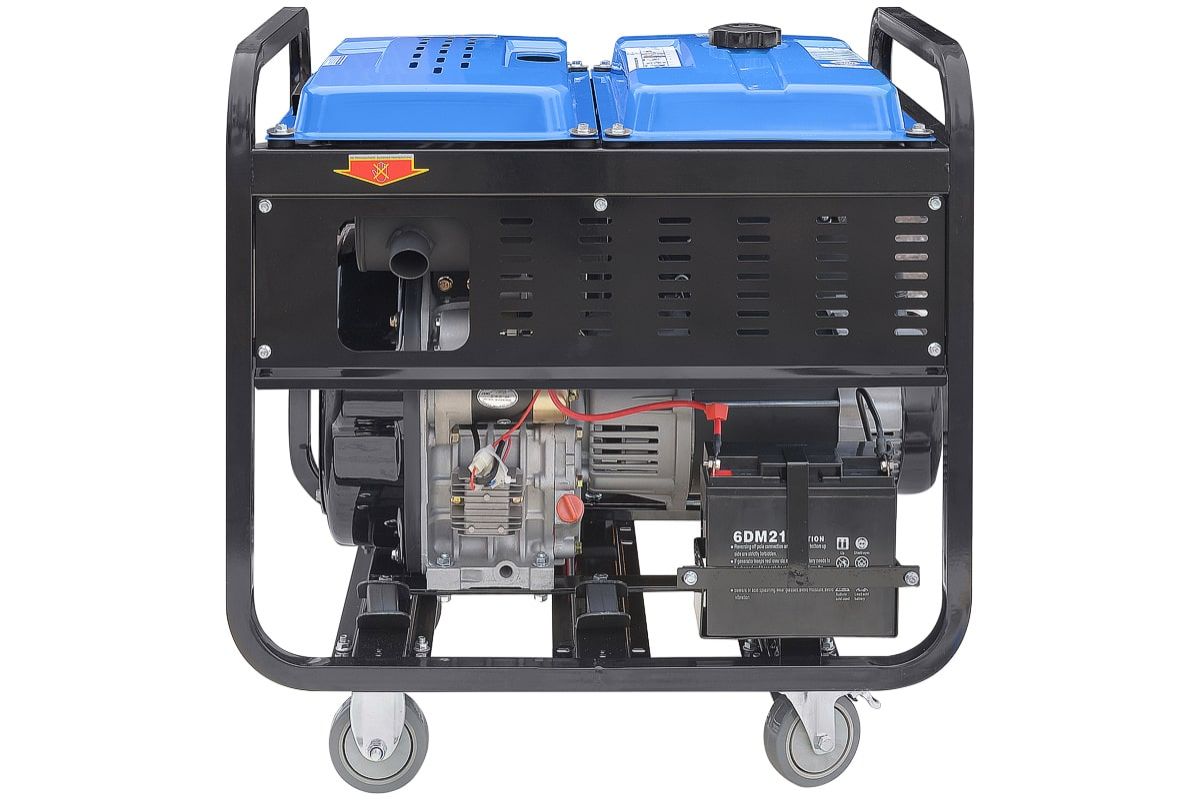 Портативные дизельгенераторы ТСС - автономные электростанции, профессионального уровня, предназначенные для использования в качестве источника электропитания напряжением 230В (однофазные), частотой 50 Гц. Область применения Применяются в коммерческих и социальных организациях, специальных службах, частном секторе, можно использовать генератор для загородного дома, дачи. Основные сферы: строительство и торговля; сервисные и аварийные службы; туризм и отдых; частные домовладения Отличительные особенности •Двигатель одноцилиндровый четырехтактный, с воздушным типом охлаждения, отличается низким расходом топлива, малым уровенем вибрации и шума при работе, большим сроком службы. •Комплектуется электростартером для легкого запуска генератора. •Медная обмотка генератора в сравнении с алюминиевой обладает значительно большим рабочим ресурсом. •Брызгозащищенные розетки безопасны, надежны, долговены. Две розетки, 220В/16А и 220В/32А, выход питания постоянного тока 12 В и клемма заземления. •Влагозащитные автоматы защиты и розетки позволяют использовать генераторную установку при различных погодных условиях. •Система впрыска WEIFU. Применение системы позволяет снизить расход топлива за счет более качественного распыления и перемешивания топлива , что способствует эффективному сгоранию смеси, а также улучшению экологических показателей установки: снижению дымности и уменьшению CO в выхлопных газах. •Подшипники устойчивы к воздействию высоких температур и разрушению внутреннего кольца подшипника. •Антивибрационная система (резиновые подушки) — конструктивное решение, которое снижает уровень вибрации и шума в процессе работы генератора. •Жидкокристаллический дисплей представляет собой интеллектуальный модуль и предлагает эффективный способ контроля параметров работы электростанции. Дисплей показывает часы работы электростанции, напряжение и частоту тока. •Счетчик моточасов позволяет точно определить время проведения очередного технического обслуживания. •Встроенный датчик уровня топлива позволяет осуществлять визуальный контроль остатка топлива в баке. Топливный бак увеличенного объема обеспечивает автономную работу агрегата в течение 10-12 часов. •Автоматический регулятор напряжения выполняет функцию стабилизатора напряжения, обеспечивает высокий уровень стабильности выходного напряжения и устойчивость к перегрузкам. •Автоматический выключатель обеспечивает защиту генератора от перегрузок и короткого замыкания. •Электронная защита от перегрузки отключает питание от потребителей при превышении нагрузки больше максимальной. •Индикатор аварийного падения давления масла и индикатор перегрузки генератора указывают причину внезапной остановки генератора. •Предпусковой подогрев (свеча накаливания) предназначен для упрощения запуска двигателя при отрицательных температурах. •Класс защиты IP 23 обеспечивает защиту от предметов, размер которых превышает 50 мм, и частиц диаметром более 2,5 мм. •Генераторная установка поставляется с комплектом шасси для облегчения ее транспортировки. •Набор инструментов в комплекте. Габариты генератора без колес: 707х525х610 Габариты генератора с колесами: 707х525х740 Гарантии На все портативные дизель-генераторы ТСС предоставляется гарантия 12 месяцев. Поставка запасн