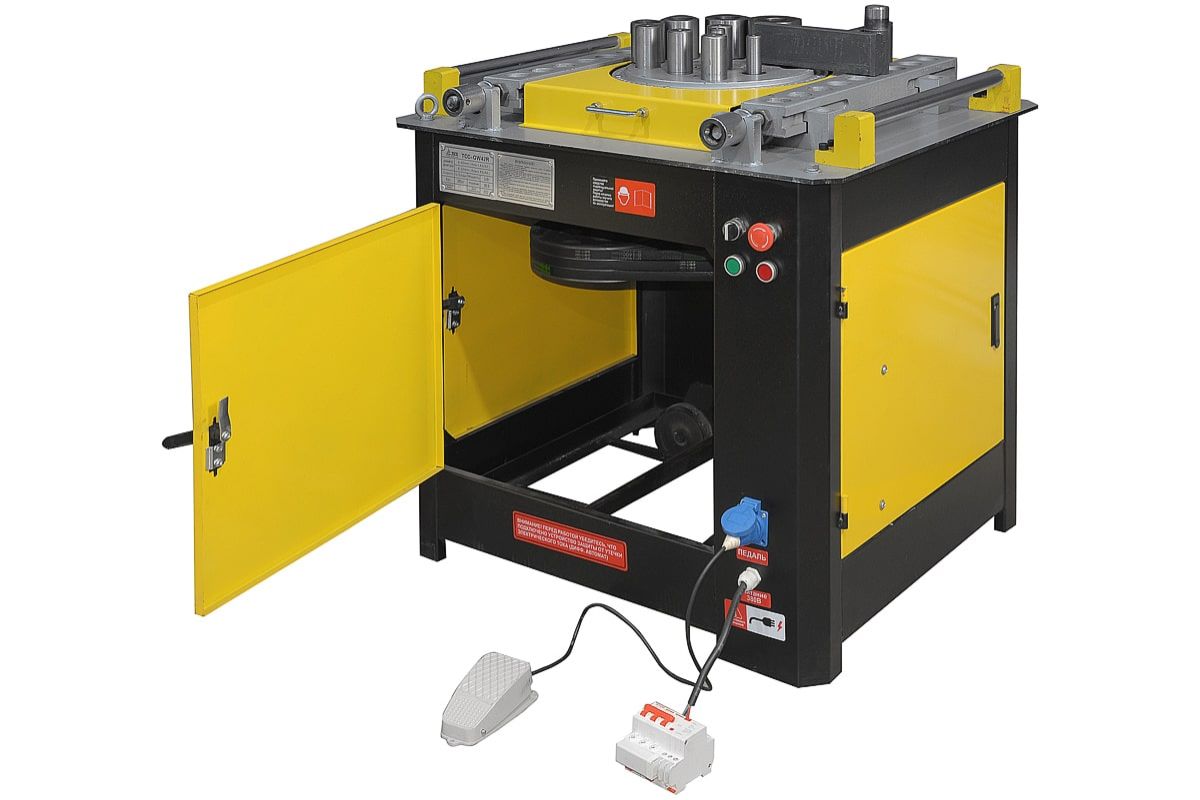 Простота в управлении и легкость регулировки нужного угла изгиба дают возможность быстро перенастроить станок для изготовления очередного вида изделий. Наличие педального и ручного управления способствует удобству работы оператора. Диск сгибания работает в режиме доводчика.